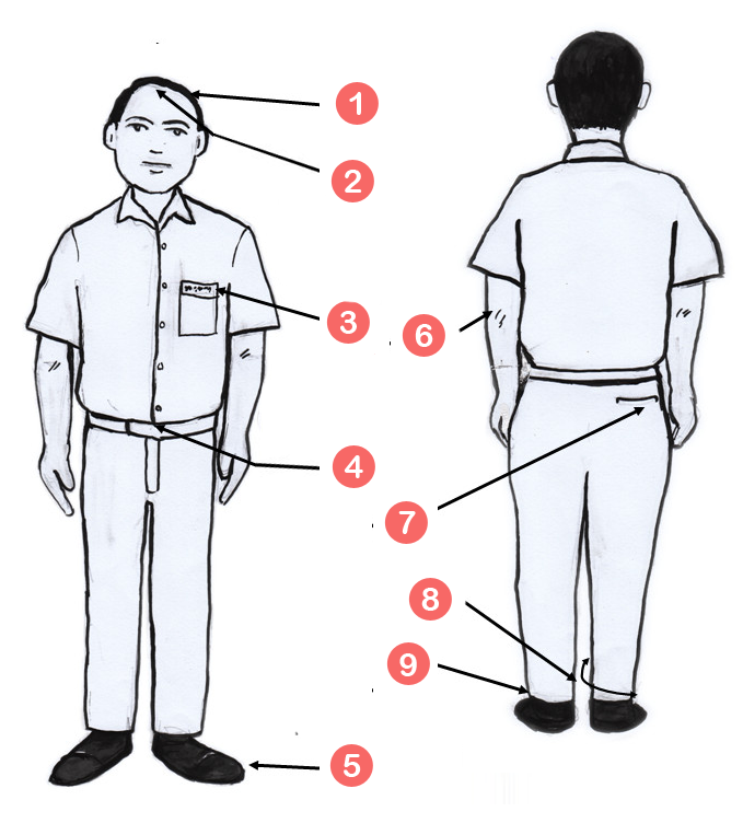 - කලිසමේ පසුපස සාක්කු දෙකක් තිබිය යුතුය.
